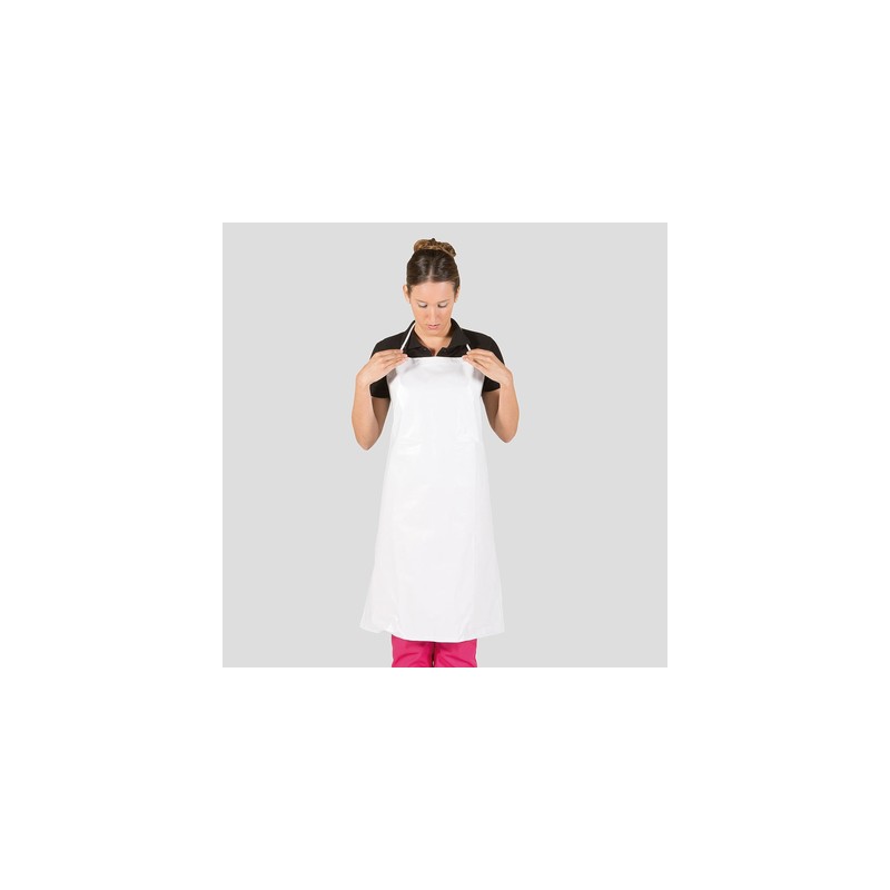 Delantal de SKAY sin bolsillos, con cordones para ajustar en peto y laterales. Composición PVC/ Algodón. Acabado impermeable.