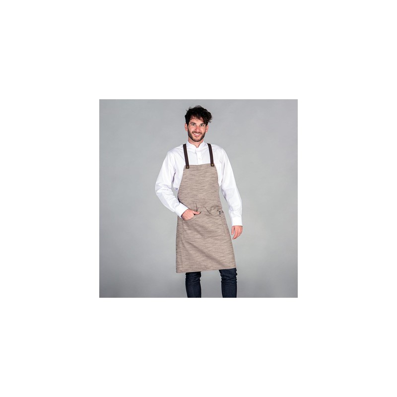 Delantal con peto confeccionado en sarga rústica de 50% Algodón - 50% Poliéster.