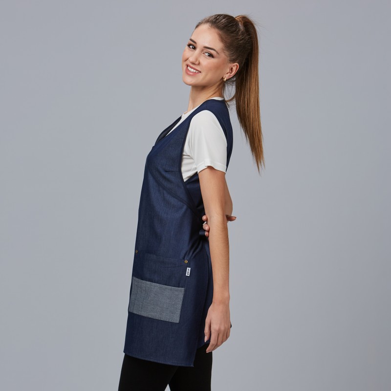 Casulla profesional de sarga técnica 100% Poliéster: resistente, fácil de cuidar y con buena caída. Ajuste lateral por cintas y pinzas en sisa/espalda para un entalle cómodo y pulido durante la jornada. Dos bolsillos laterales de acceso rápido para herramientas y accesorios en peluquería, estética y comercio.