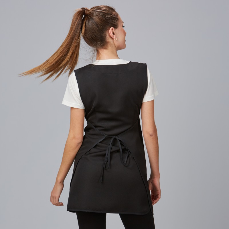 Casulla profesional con solapa y diseño bicolor que proyecta una imagen elegante en centros de estética, peluquería y comercio. Dos bolsillos laterales para tener utensilios siempre a mano y tiras laterales que facilitan un ajuste cómodo y seguro. Microfibra de alta durabilidad y fácil cuidado, pensada para uso intensivo diario.