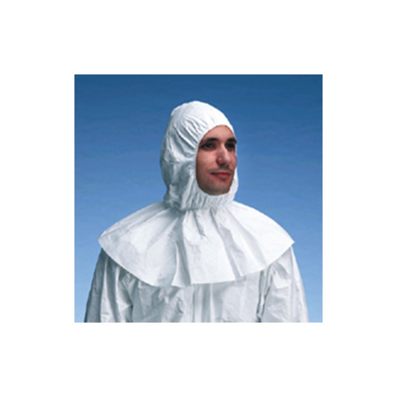 Capucha y cubre hombros, elástico alrededor de cuello y cara, en talla única y color blanco.