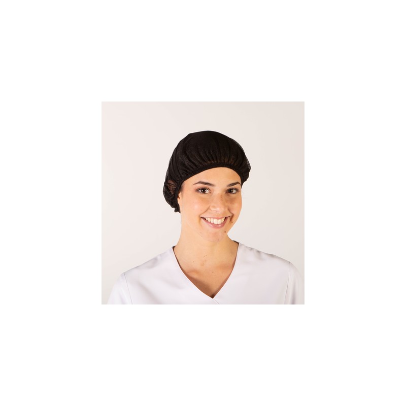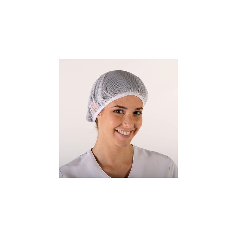 Gorro unisex confeccionado en rejilla blanca o negra, con goma de ajuste rizada en todo el contorno del borde.