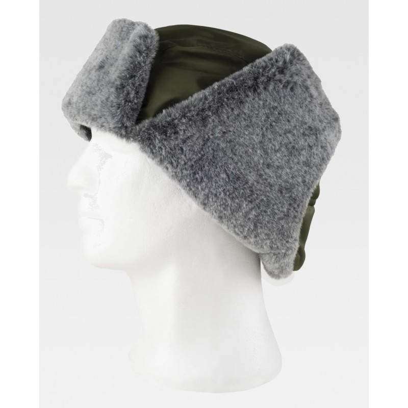 Gorro con orejeras abatibles, forrado de pelo y acolchado. Combinado con fluorescente y detalles reflectantes.