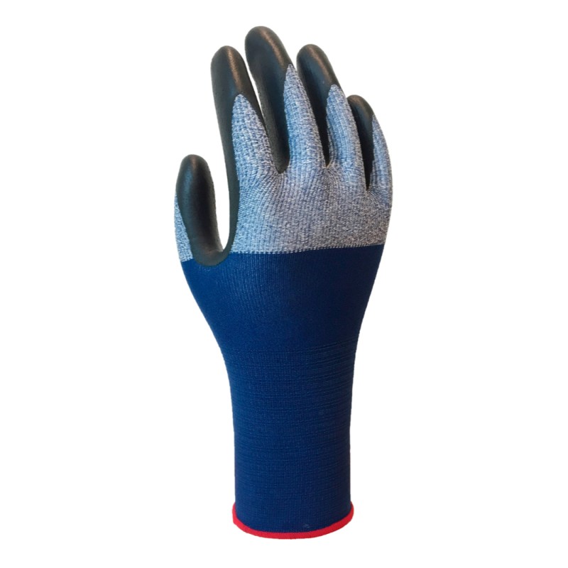 Guante con revestimiento de nitrilo microporoso en la palma sobre forro de nailon, diseñado para ofrecer manejabilidad en entornos grasientos, elástico de peso ultraligero y bajo nivel de pelusa.