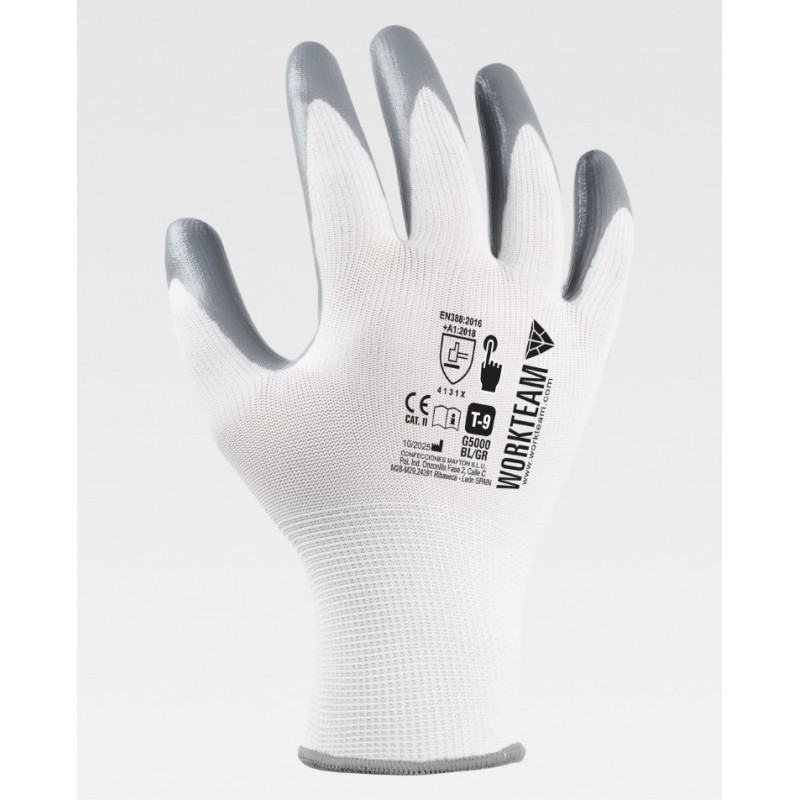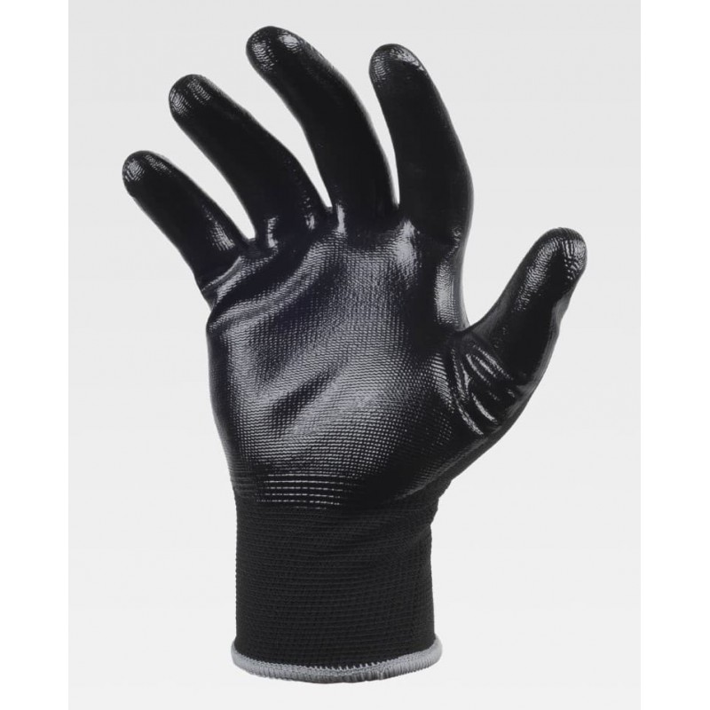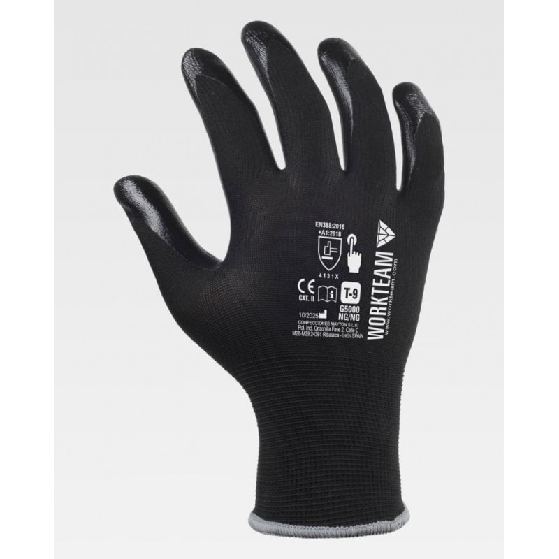 Guantes recubiertos de nitrilo microporoso con dorso de Poliéster 13G y función táctil, pensados para trabajos de manipulación con buen agarre y sensibilidad. Confección sin costuras para mayor comodidad, puño elástico y recubrimiento de nitrilo microporoso resistente al contacto con aceites, lubricantes y grasas.