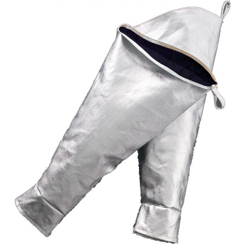 Pantalón aluminizado, tiro sobredimensionado, cintura elástica, tirantes regulables y cierre de cremallera metálica con cinta de NOMEX®. Color: Aluminizado.