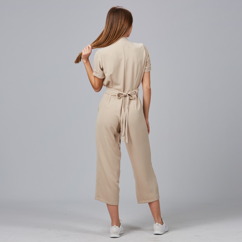 Mono elegante y funcional para profesionales de la belleza que buscan comodidad y estilo en su uniforme laboral. Con manga corta y cierre de botones de presión, este mono ofrece facilidad de uso y una pierna holgada que garantiza libertad de movimiento.