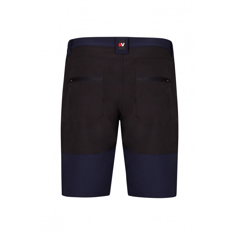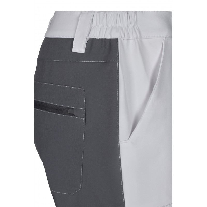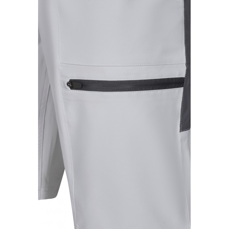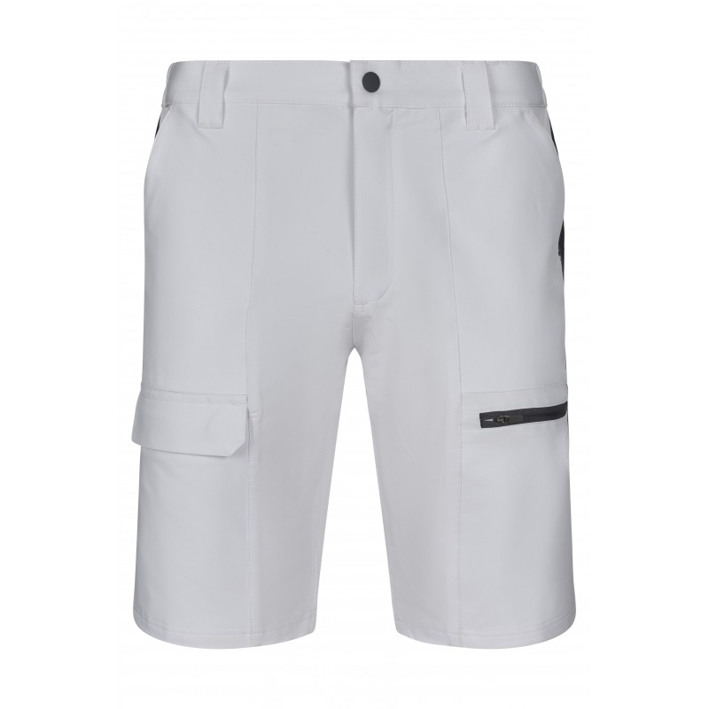 Bermuda con cierre central con cremallera y botón, cintas reflectantes segmentadas, termofijadas, en el bajo del pantalón, cinturilla lateral elástica, doble costura de seguridad, dos bolsillos franceses, dos bolsillos de fuelle con fuelle central, tapeta, velcro y tiradores y dos bolsillos traseros, con tapeta, velcro y tiradores.