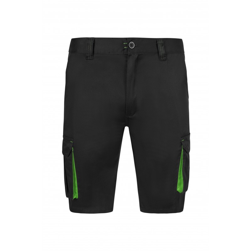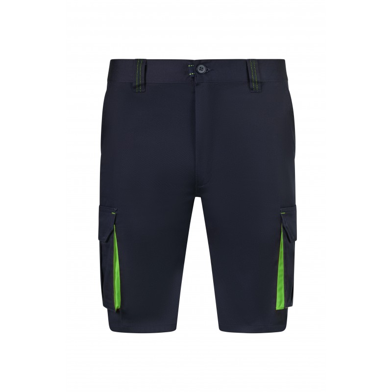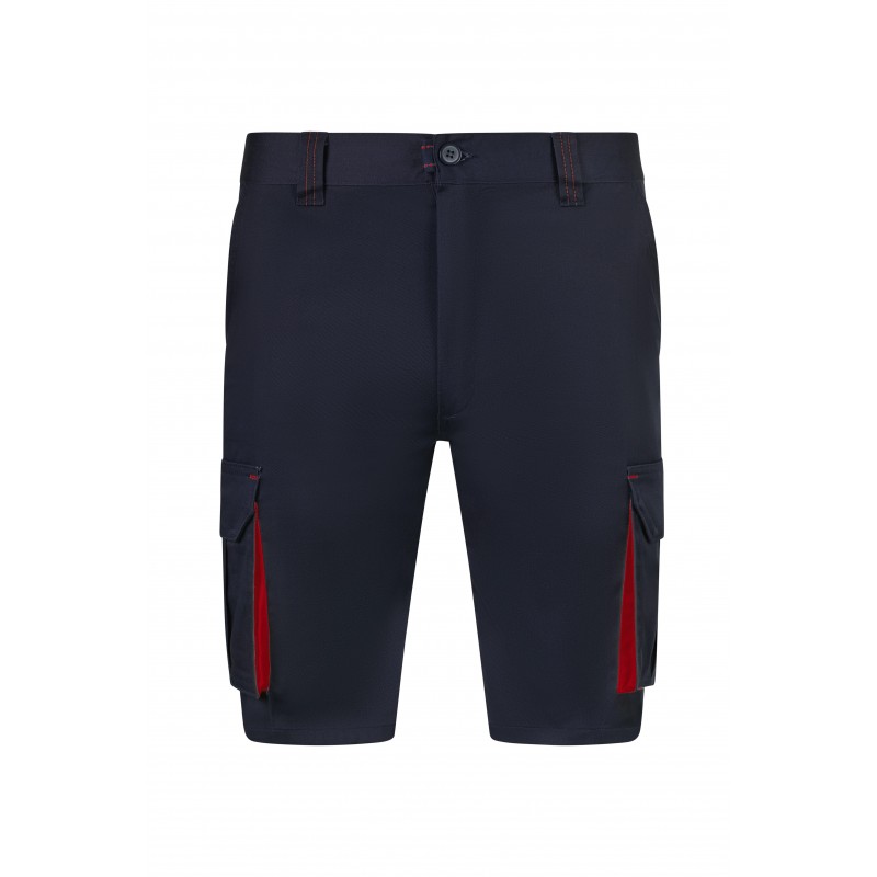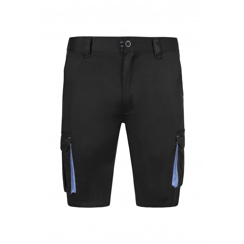 Bermudas stretch bicolor multibolsillos, cierre central con cremallera y botón, color contraste en fuelles, tiradores y presillas y cinturilla elástica.