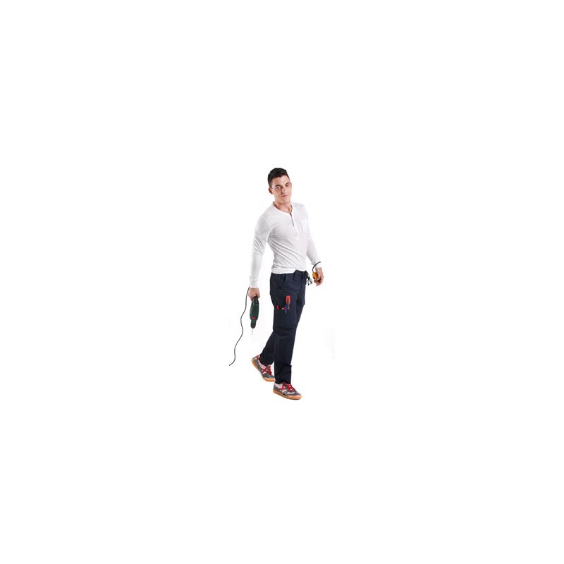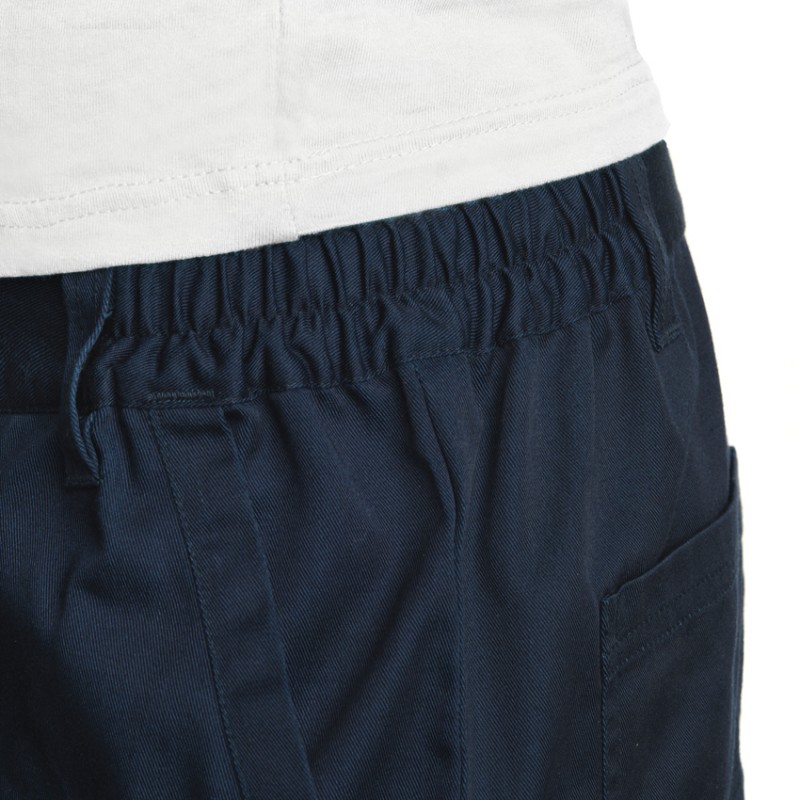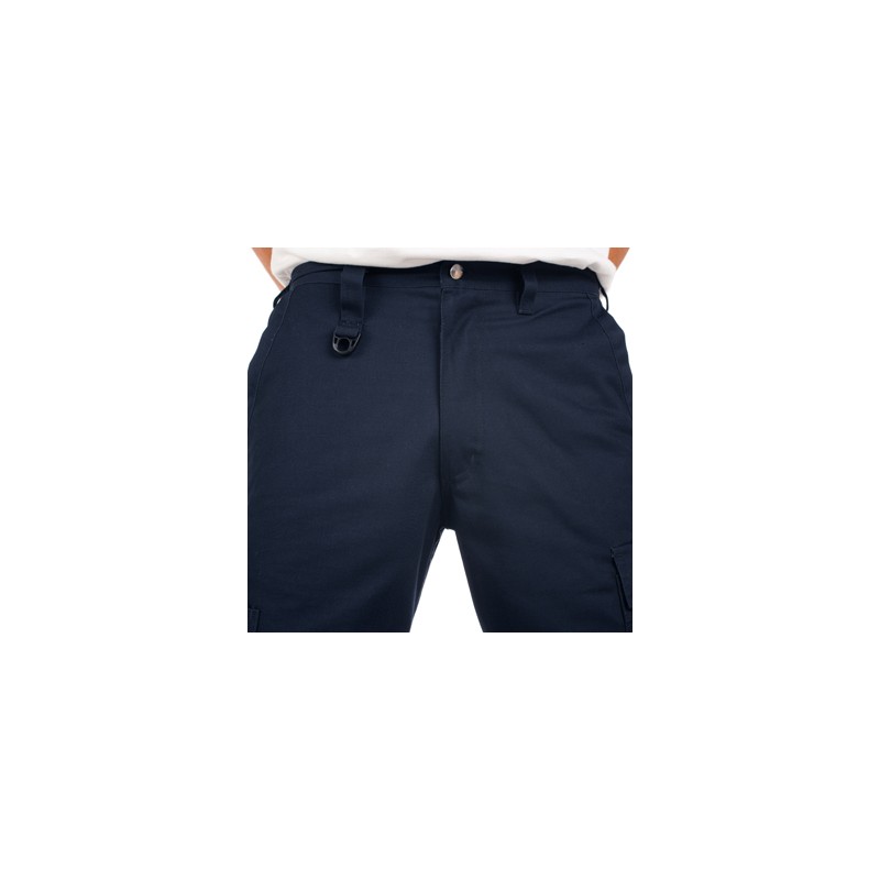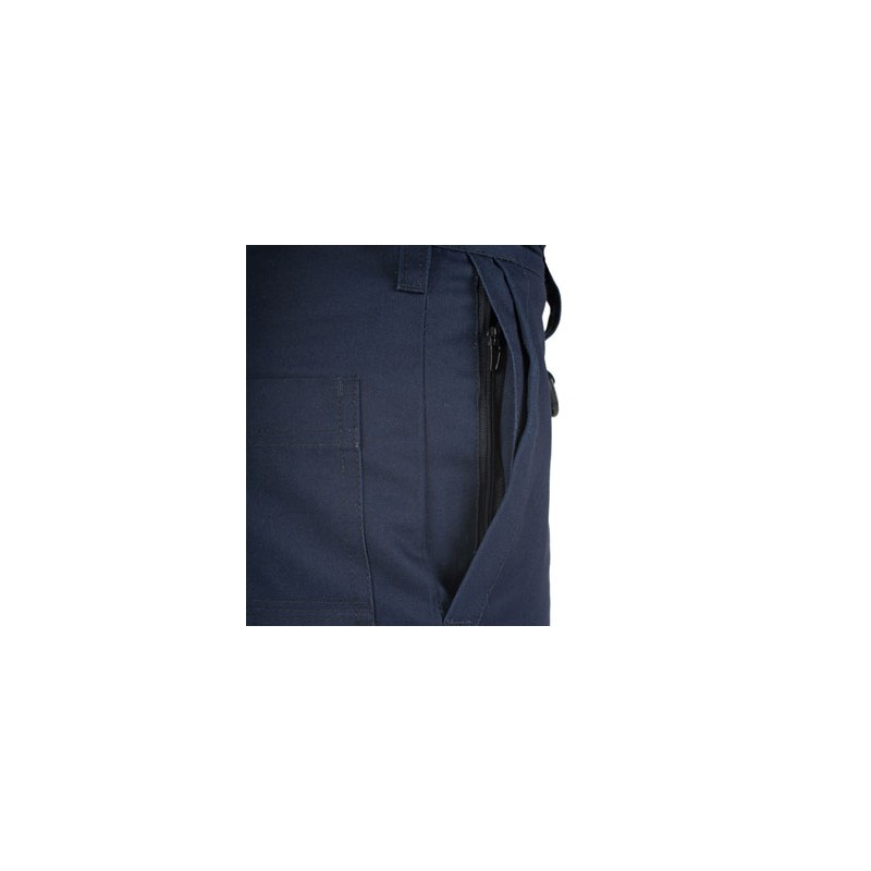 Pantalón recto sin pinzas, cinturilla ajustable mediante gomas elásticas para mayor adaptación, dos bolsillos traseros y un bolsillo lateral con cierre de cremallera en el lado derecho, dos bolsillos laterales, izquierdo con tapeta y fuelle más un bolsillo interior y derecho con varios compartimentos.