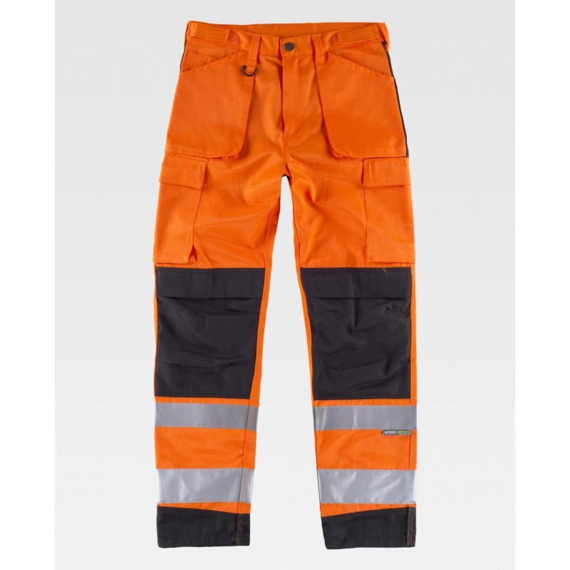 Chaleco acolchado combinado con alta visibilidad y cintas reflectantes, cuello alto con cierre de cremallera, solapa protectora interior vuelta en la parte superior cubriendo la cremallera.