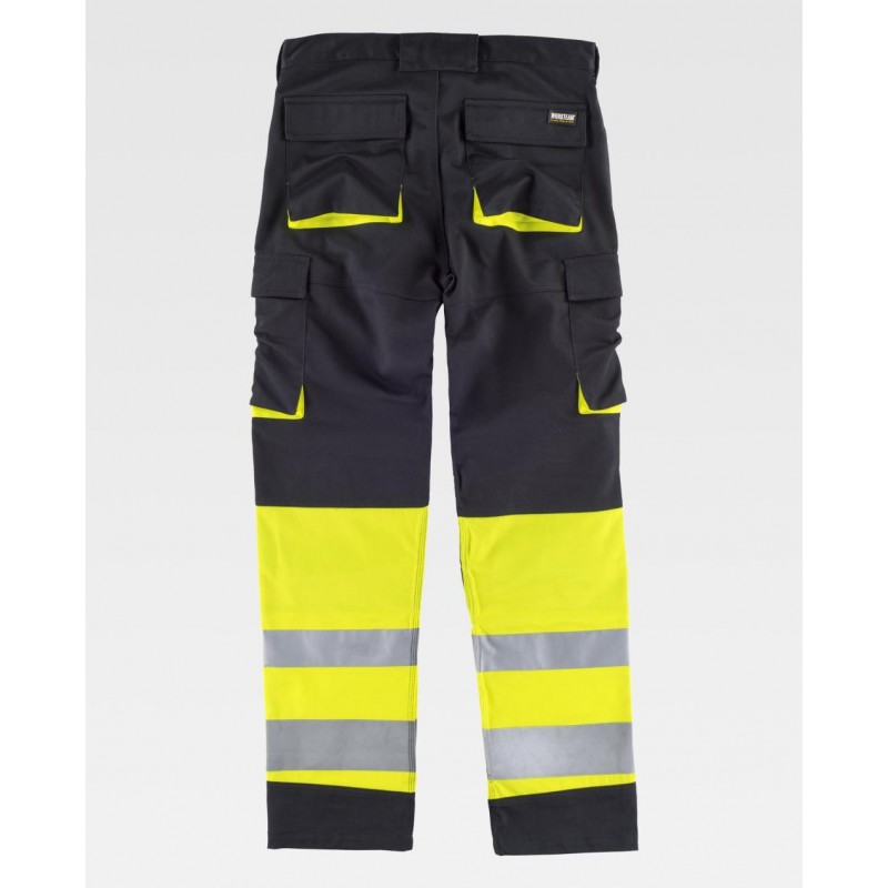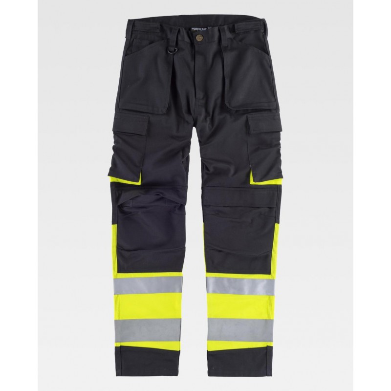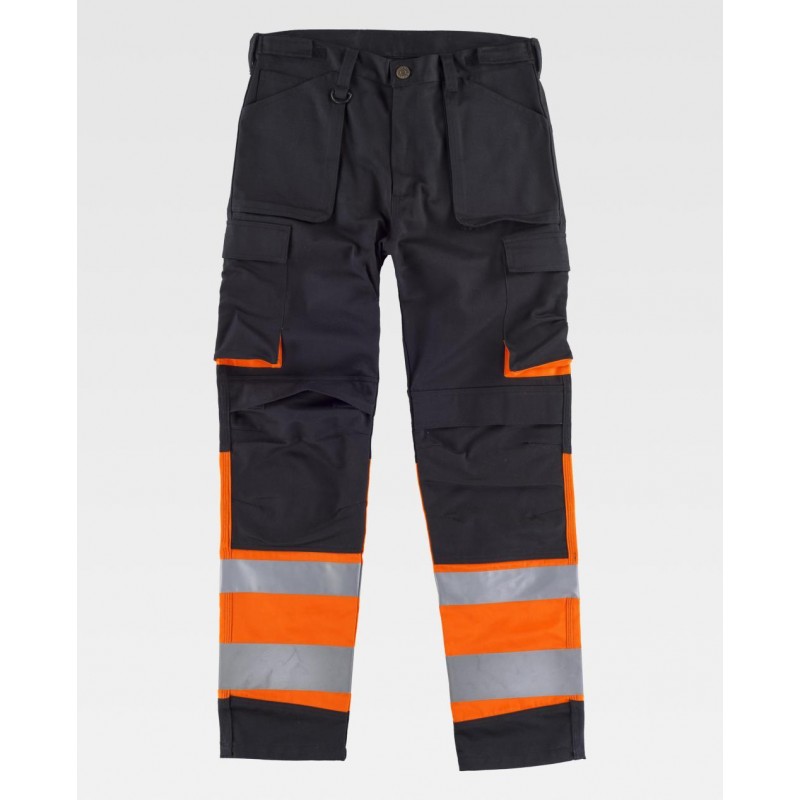 Chaleco de trabajo Workshell con tejido Ripstop combinado con canesús y cintas reflectantes. Cuello alto y cierre de cremallera de nylon. Un bolso de pecho y dos laterales interiores con cremalleras de nylon. Un bolso de plastón con cierre de cremallera en el interior.