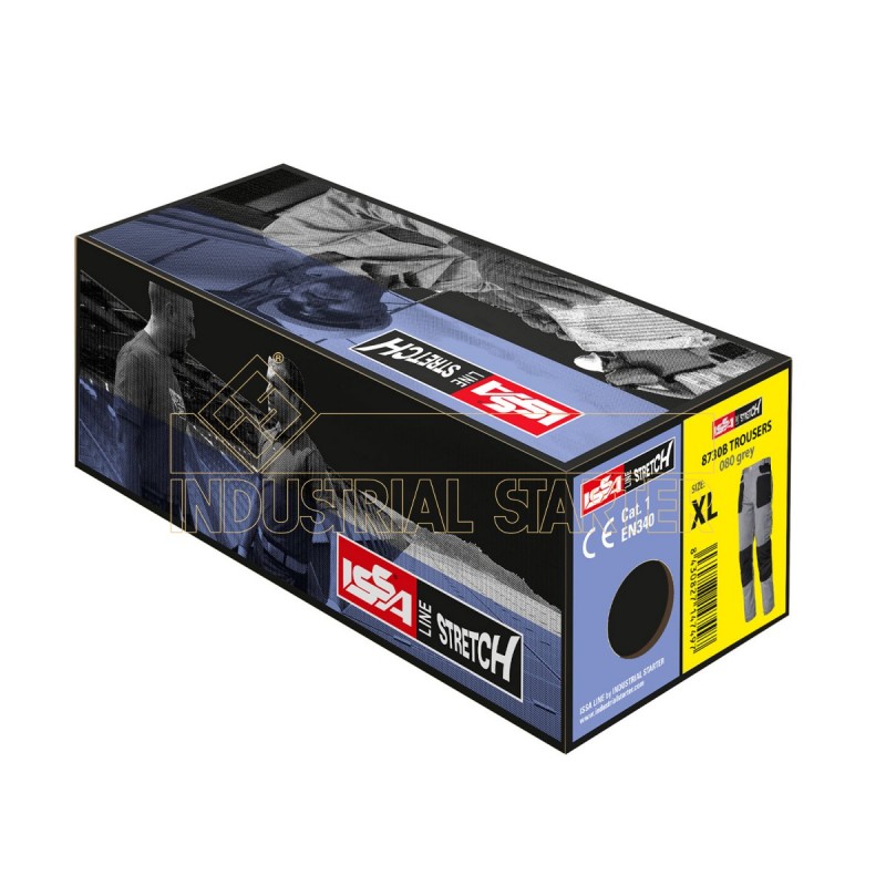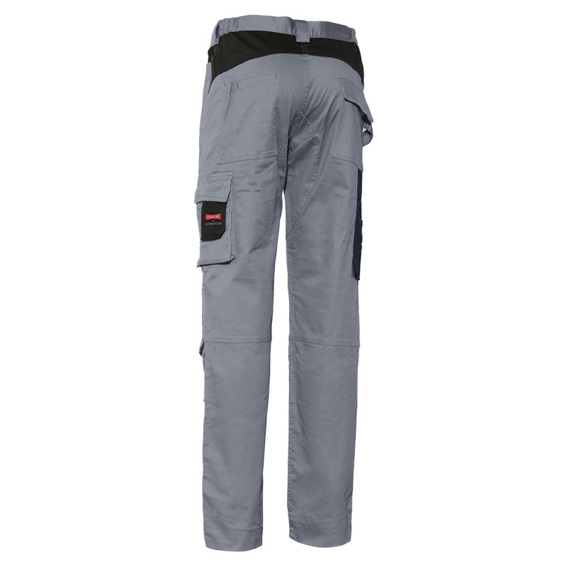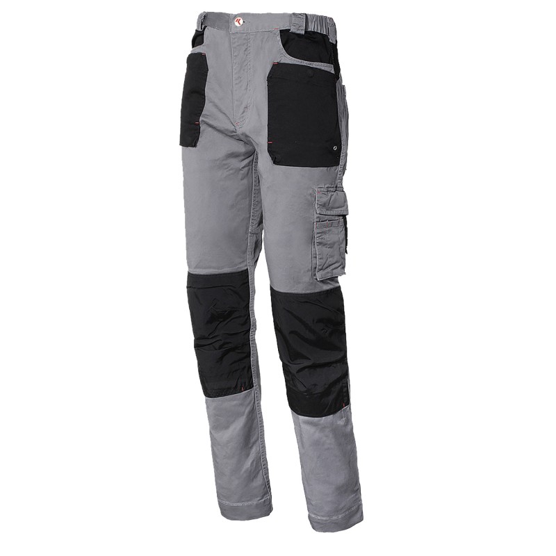 Pantalón elástico con elástico en cintura, bolsillo lateral y porta metro, rodillas reforzadas con tejido impermeable compatibles con rodilleras.