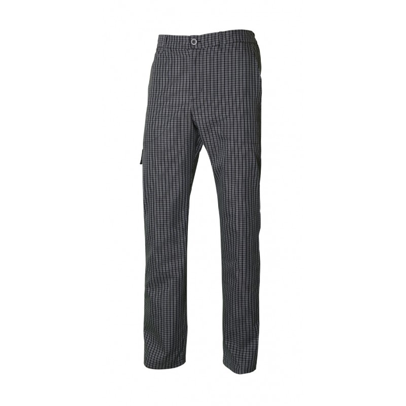 Delantal peto con bolsillo, dos tiras en los extremos para ajustar la prenda, hebilla para ajustar la tira del cuello y un bolsillo central.