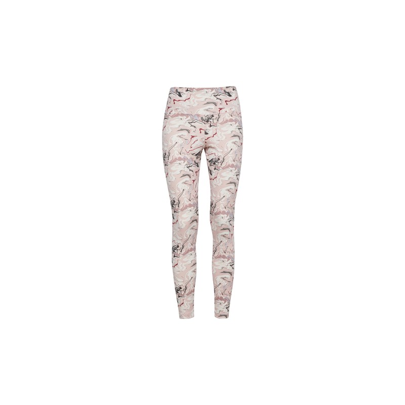 Malla tobillera deportiva de mujer estampada con cintura alta ajustable y bolsillo trasero en cinturilla con banda reflectante.