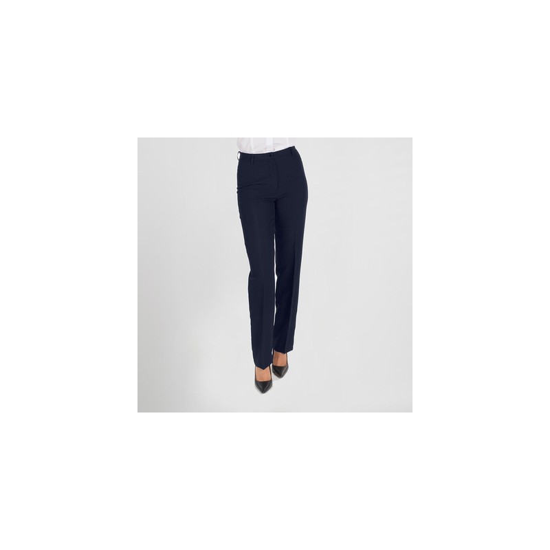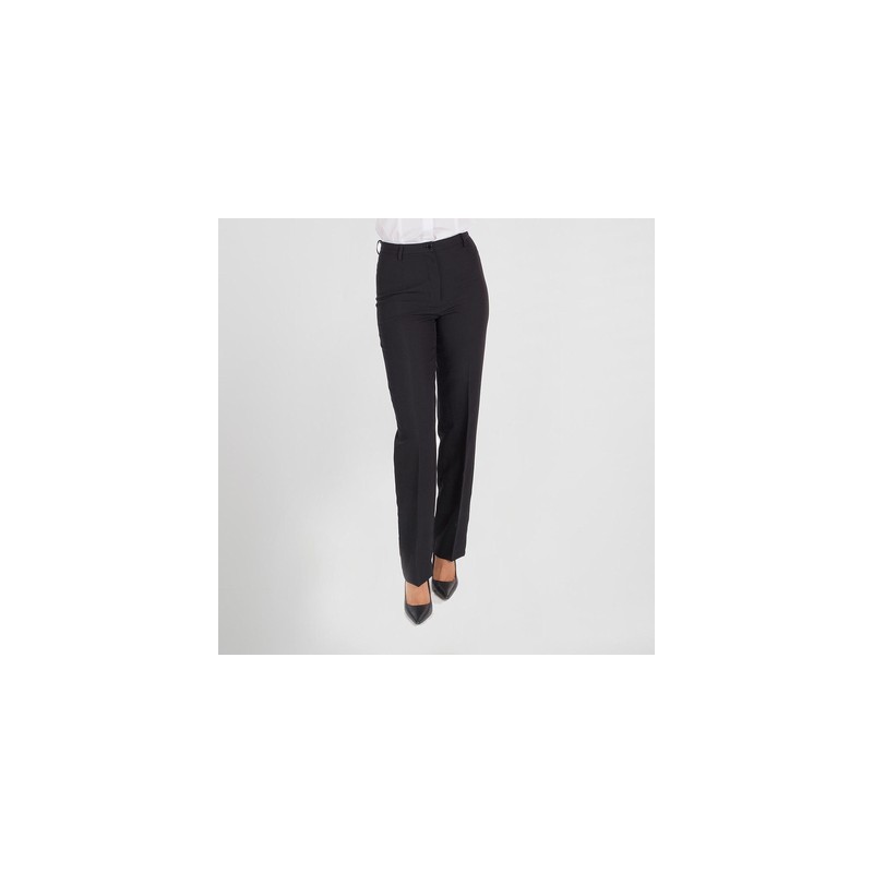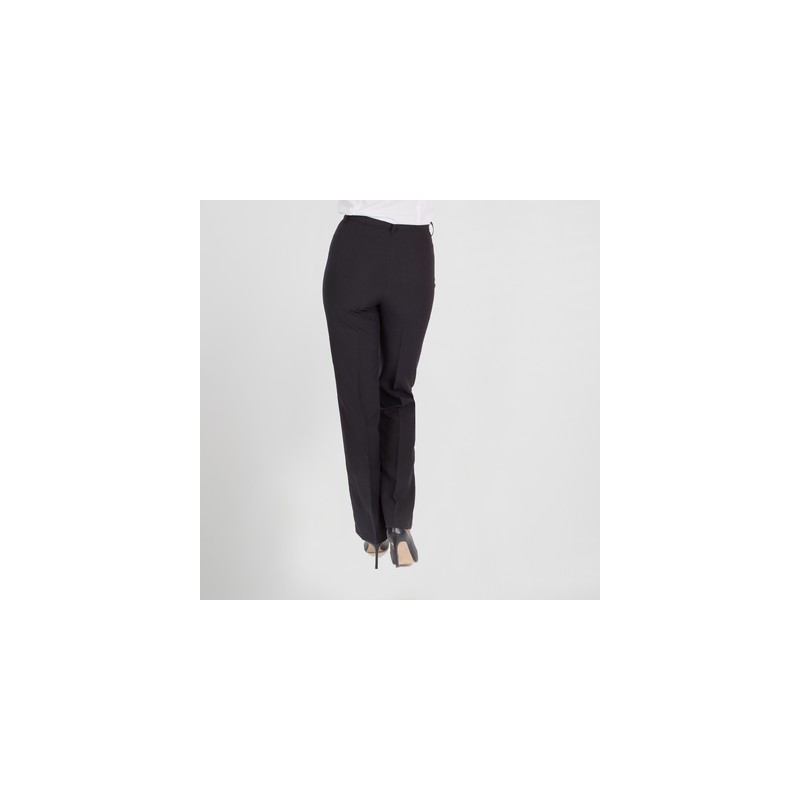 Pantalón de mujer ajustado, con pinzas en delantero, de talle alto, cinturilla, trabillas en la cintura y cierre mediante botones y cremallera en el delantero.