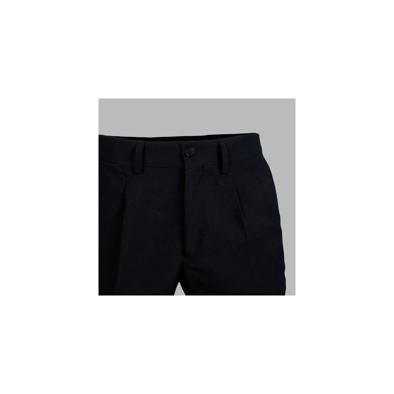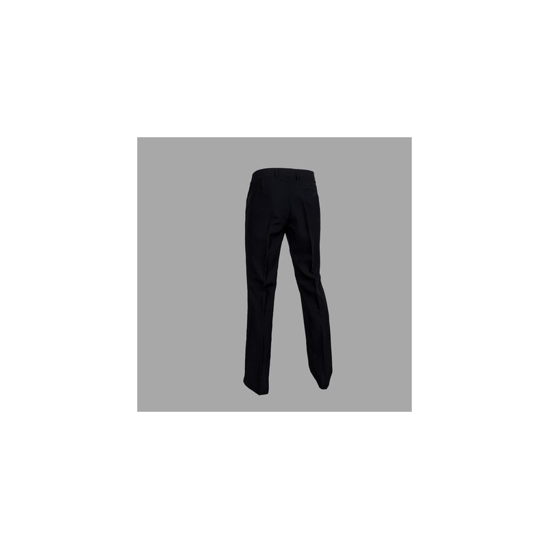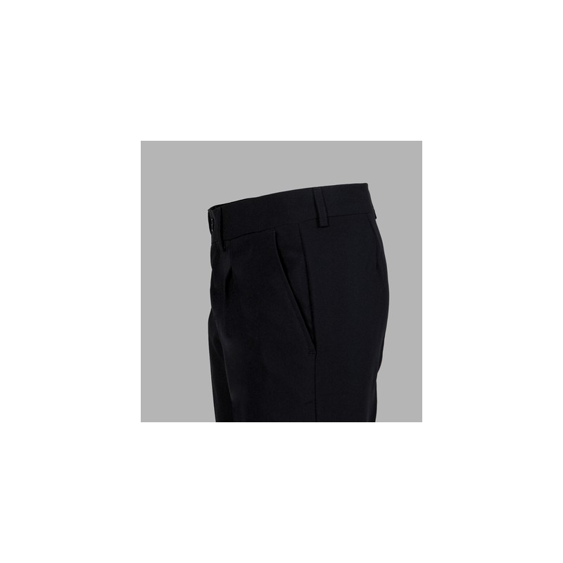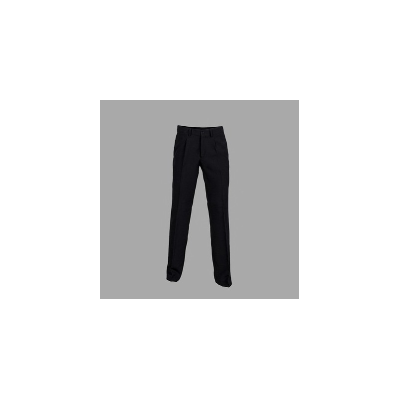 Pantalón unisex regular fit, con cremallera y botón, trabillas, dos bolsillos franceses en costados y otro de ojal trasero, modelo clásico con pinzas, confeccionado en STRECH de 100% Poliéster.