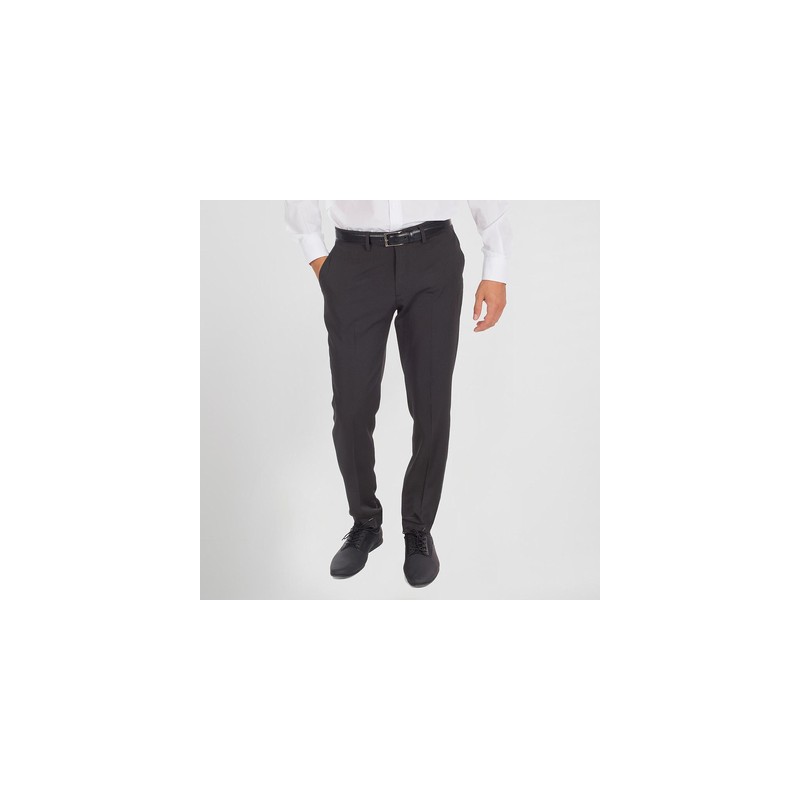 Pantalón de hombre ajustado, sin pinzas en delantero, dos bolsillos tipo francés en costados, un bolsillo relojero y otro de vivo trasero, confeccionado en tejido bielastico tecno, alta resistencia a las manchas y fácil planchado.