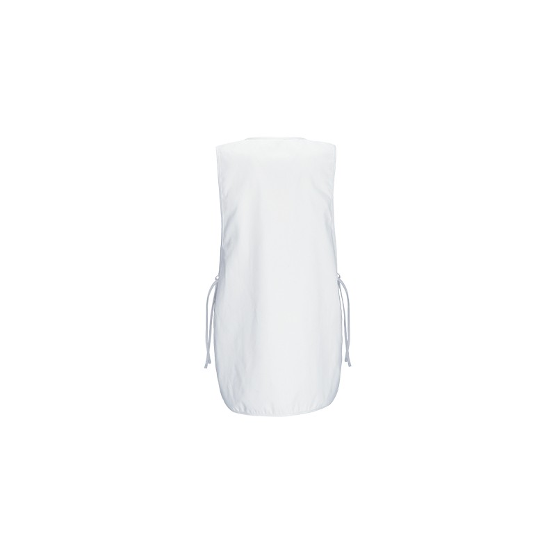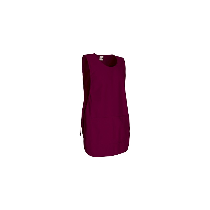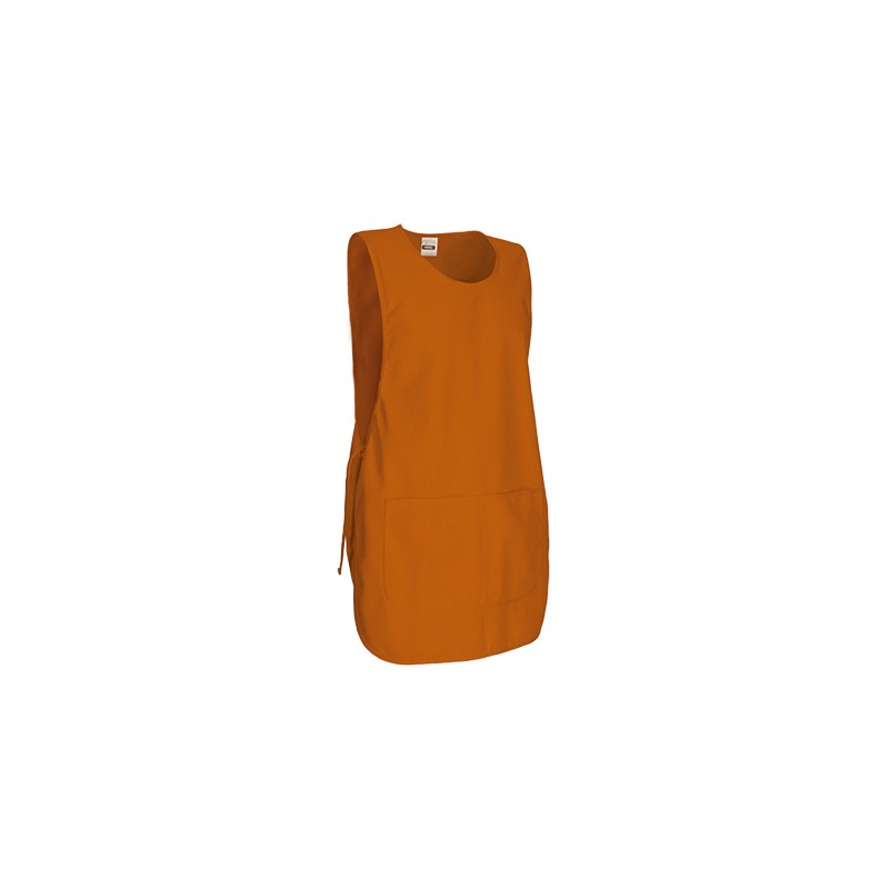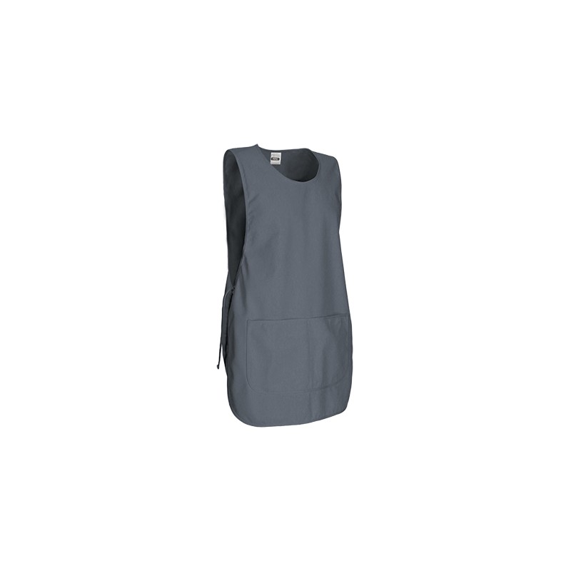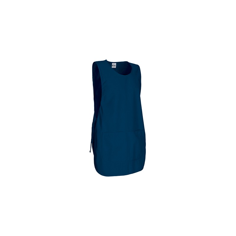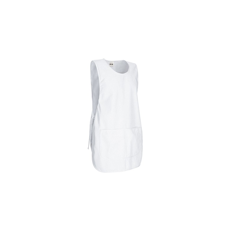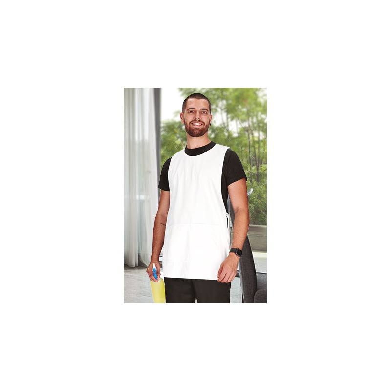 Peto de trabajo ajustable con bolsillo, confeccionado en tejido sarga mezcla algodón con poliéster resistente y duradero, cuello redondo, amplio, cómodo y refrescante.