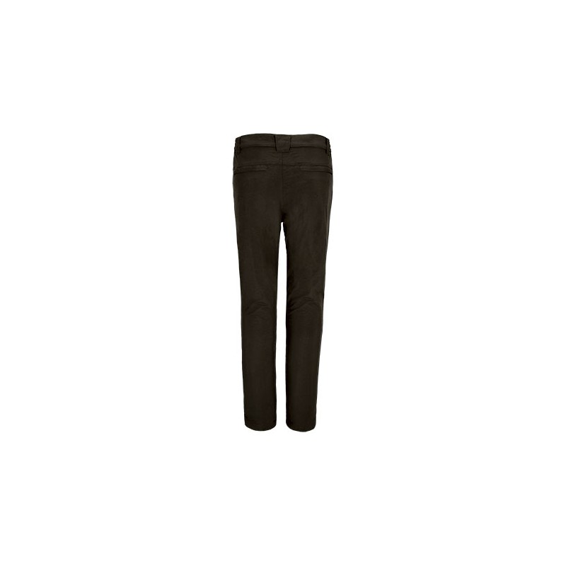 Costuras interiores sobrehiladas, doble pespunte en bajo que aumenta su resistencia y durabilidad, pinzas en las rodillas que aportan mayor movilidad.