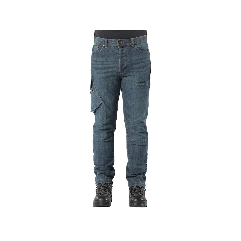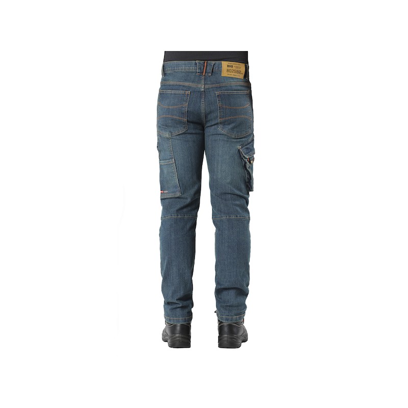 Vaqueros elásticos con tratamiento lavado a la piedra, pensados para trabajo en industria y uso diario.