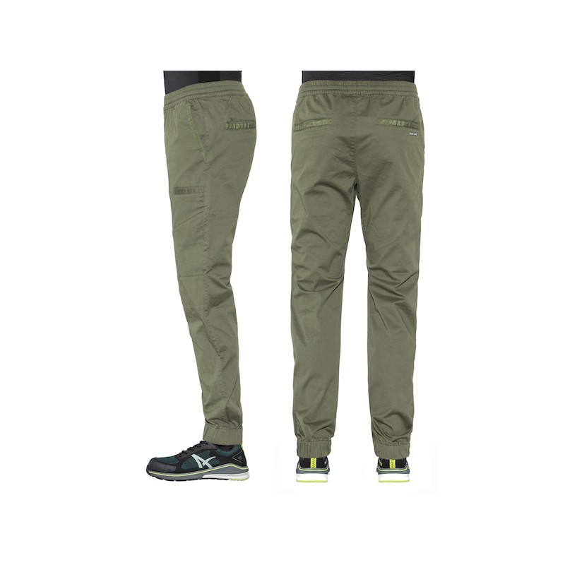 Pantalón largo de trabajo suave y cómodo con cintura elástica y bajo ajustado en los tobillos.