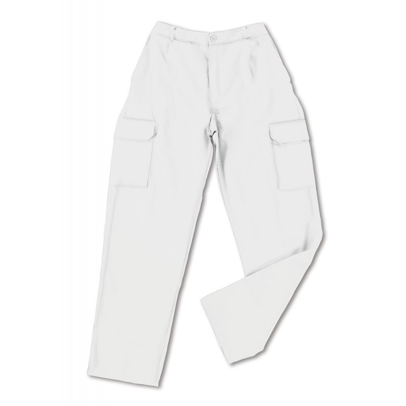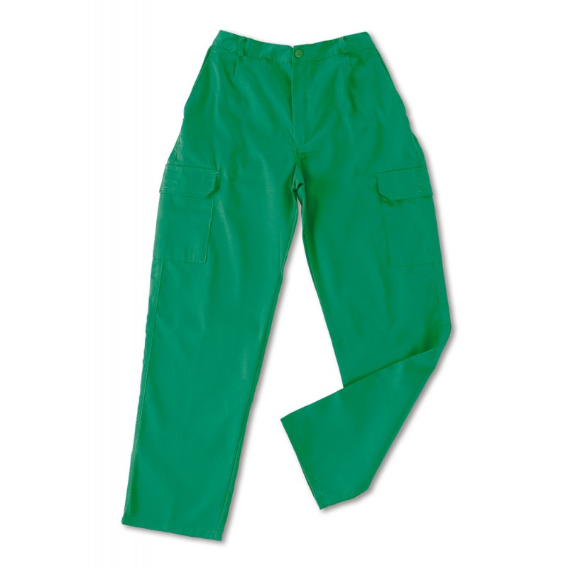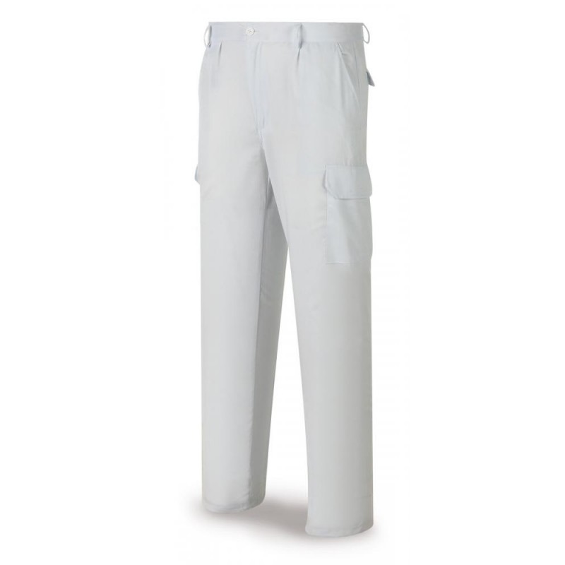 Pantalón de trabajo con cierre cremallera y tapeta, cintura con elástico para ajuste, dos bolsillos franceses, uno lateral con tapeta y cierre velcro en cada pernera y dos posteriores con tapeta y cierre velcro.