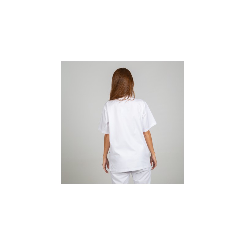 Pantalón unisex regular fit, con media goma en cintura trasera, cremallera y botón, trabillas y dos bolsillos franceses en cadera. Es ideal para uniformes de enfermería, doctores y demás profesionales en hospitales, clínicas y centros médicos, farmacia, laboratorio, veterinario, hostelería y cocina, limpieza, peluquería, estética, spa o comercio.