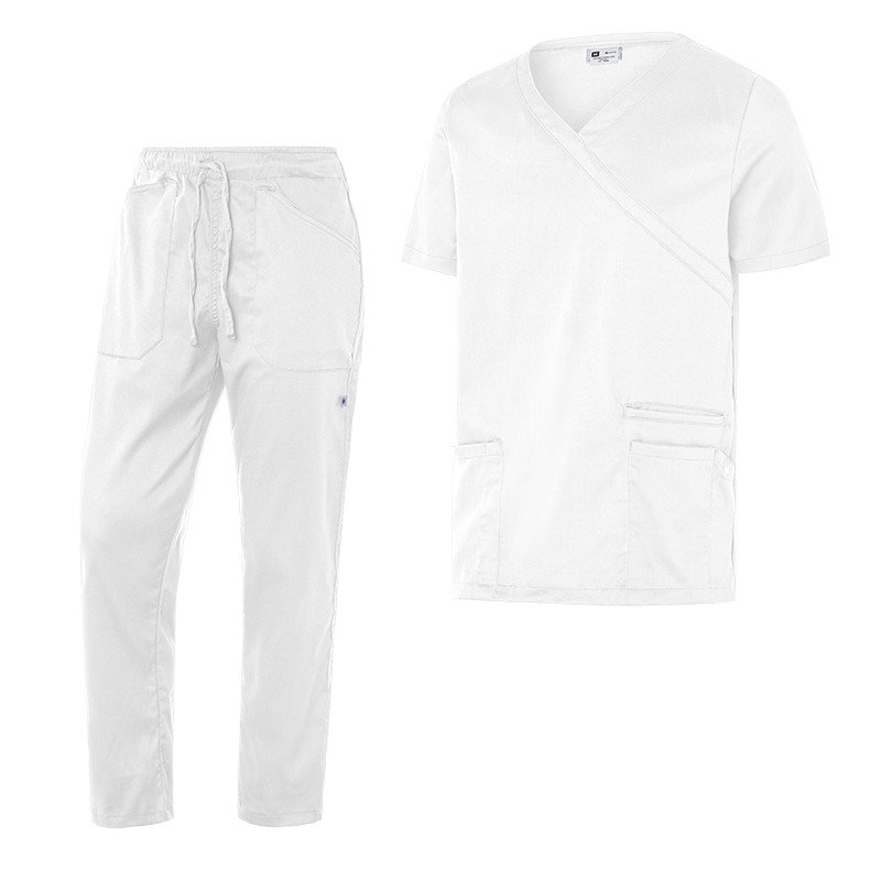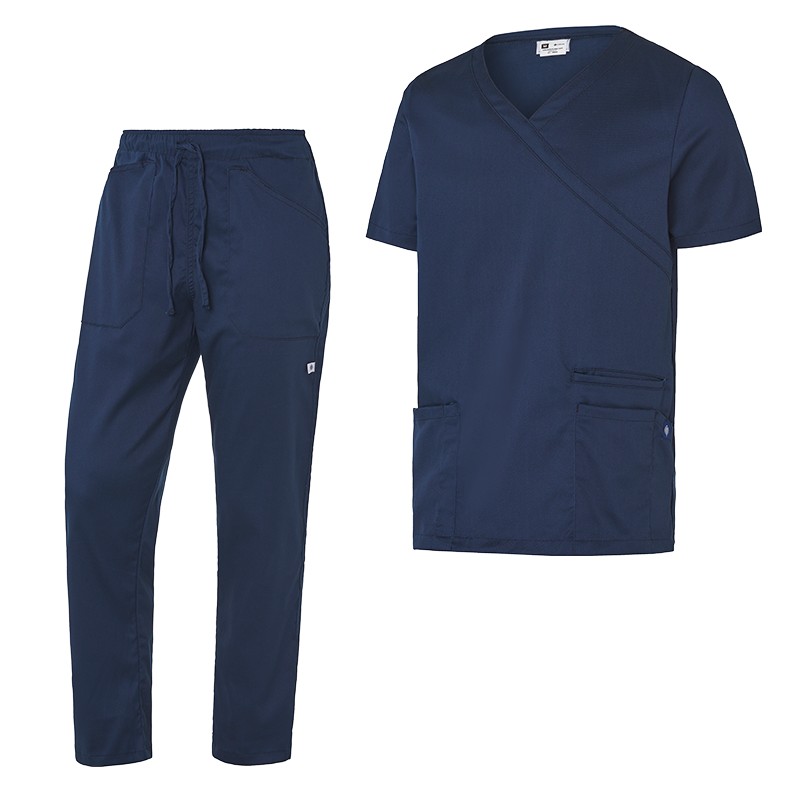 Camisola: Un bolsillo de mano con portabolígrafos, un bolsillo de mano, un bolsillo portaobjetos, un bolsillo portabolígrafos y cuello de pico cruzado.