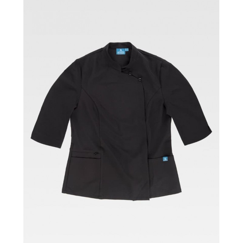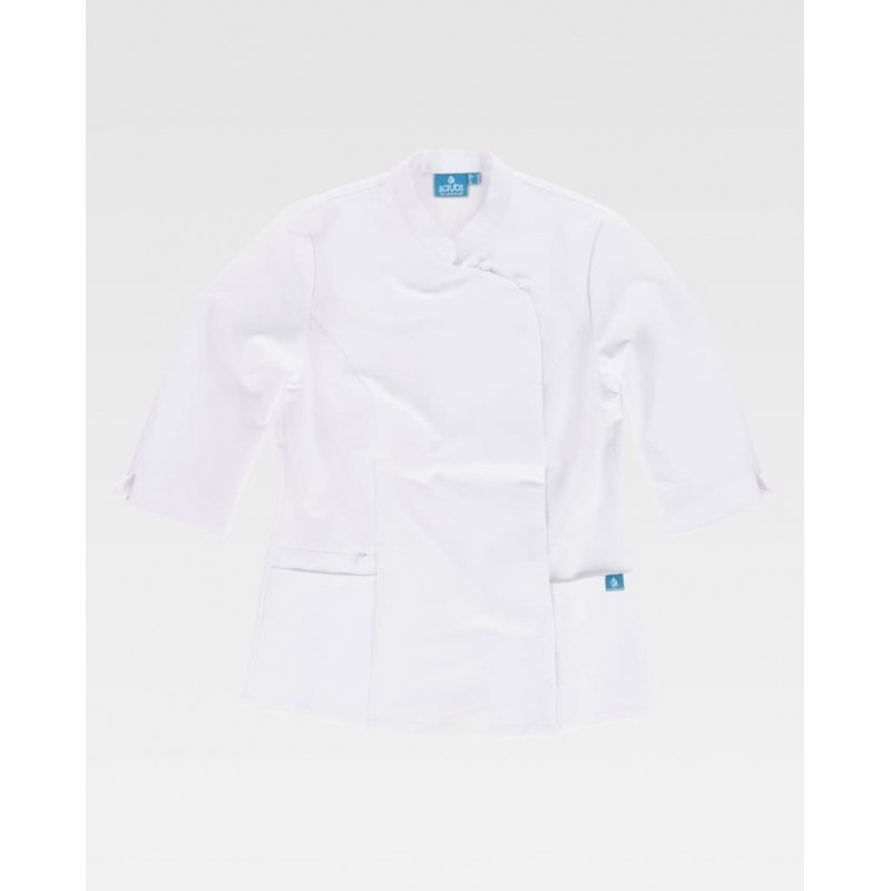 Casaca sanitaria entallada cruzada con cuello mao WorkTeam B9511
