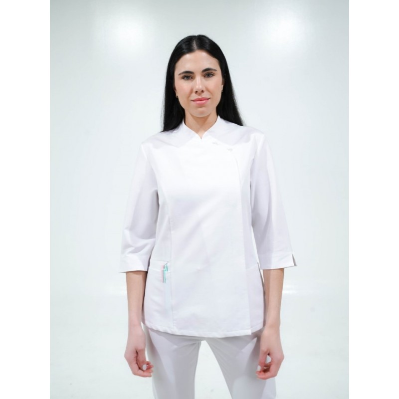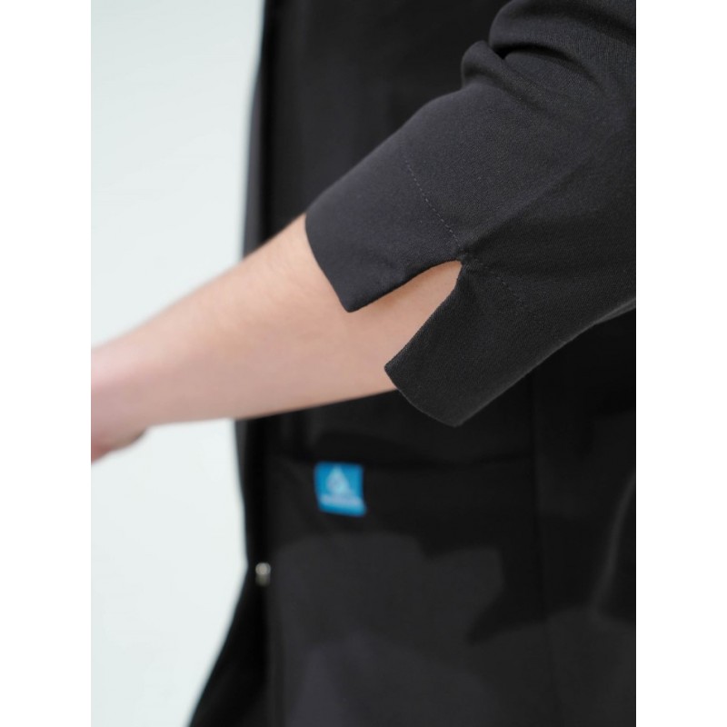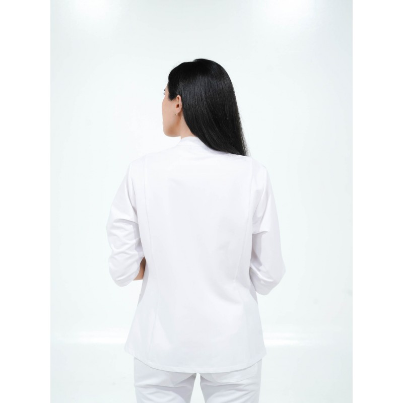 Casaca sanitaria entallada de mujer diseñada para profesionales de sanidad, estética y limpieza.