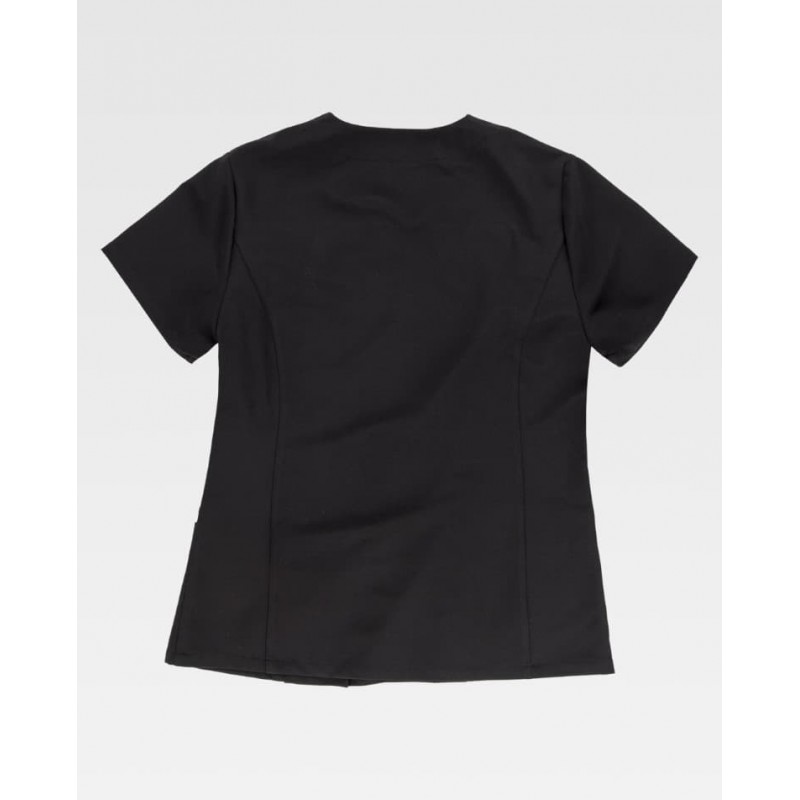Pantalón elástico de mujer con elástico en la cintura y ajuste de cordón, pensado para aportar comodidad y libertad de movimiento en el uso profesional diario. Incluye un bolsillo trasero de plastón con cierre de cremallera y tejido elástico para un ajuste más cómodo durante la jornada.