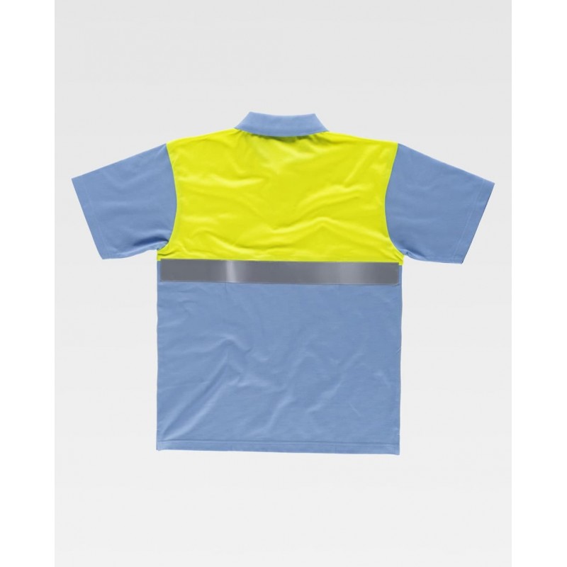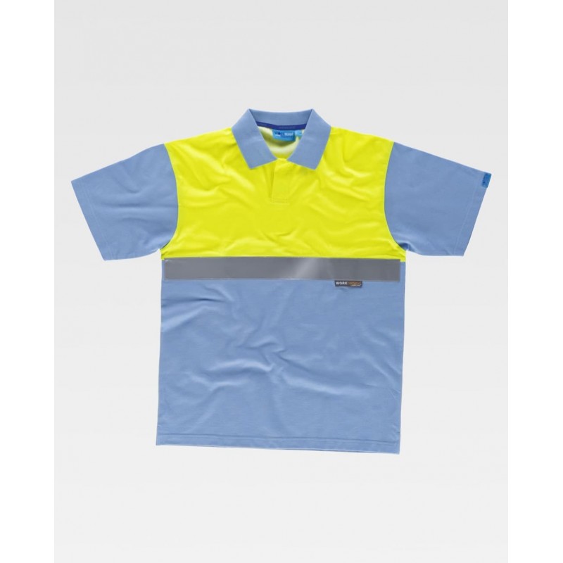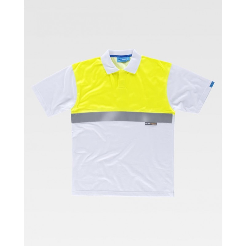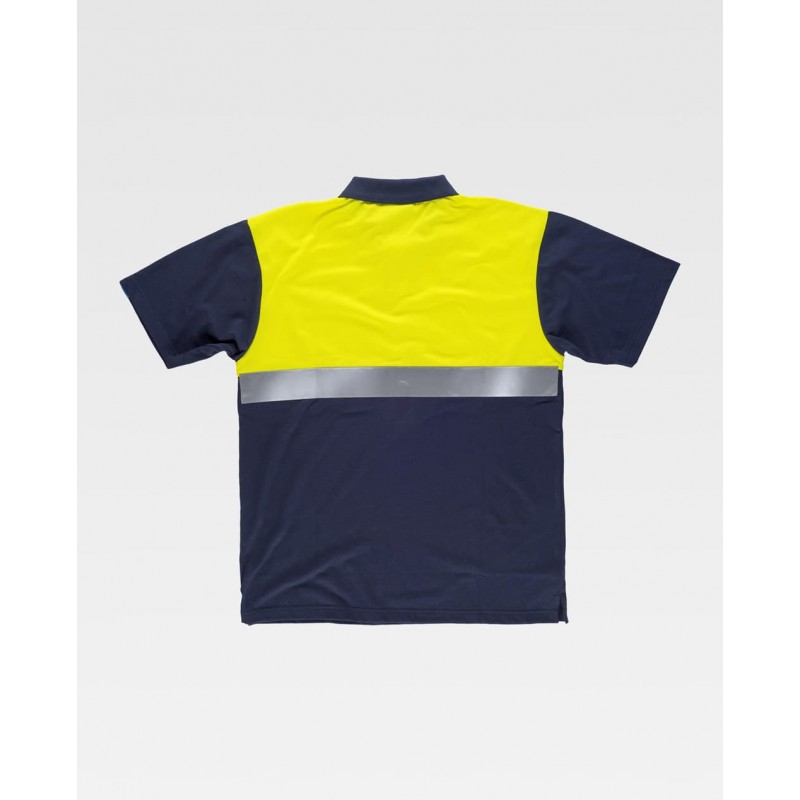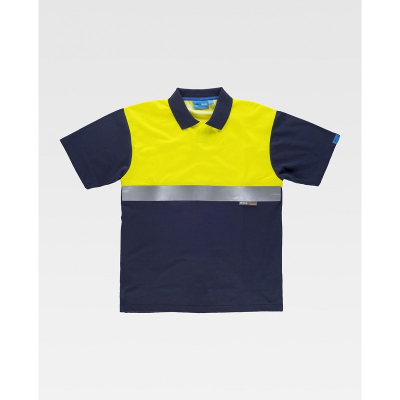 Polo combinado de manga larga con cinta reflectante en piqué de algodón con tratamiento antibacteriano, parte superior de alta visibilidad, cuello clásico sin botones, cubrecosturas interior, una cinta reflectante en pecho y espalda y cuello y puños en punto canalé.