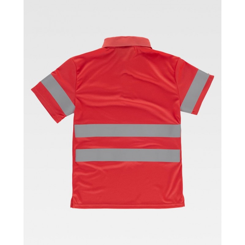 Polo de manga corta sin bolsillos, combinado con alta visibilidad, cintas reflectantes en pecho, espalda y mangas.