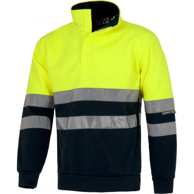Jersey de cuello alto con media cremallera de nylon, puños y cintura elásticos, dos cintas reflectantes en pecho, espalda y mangas.