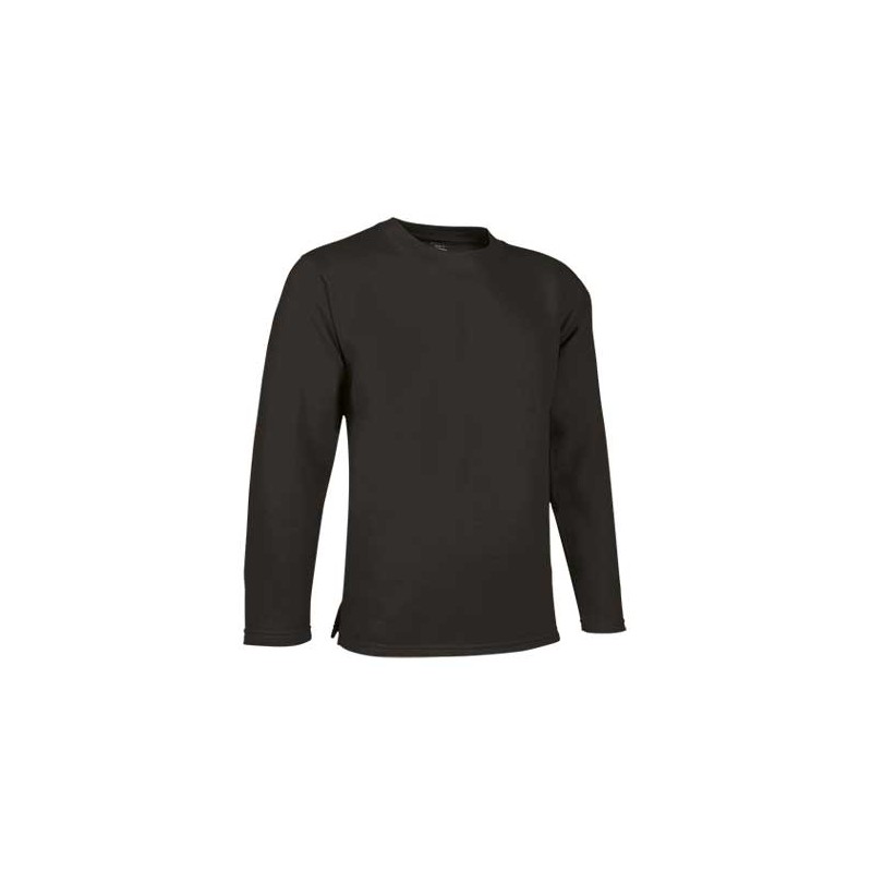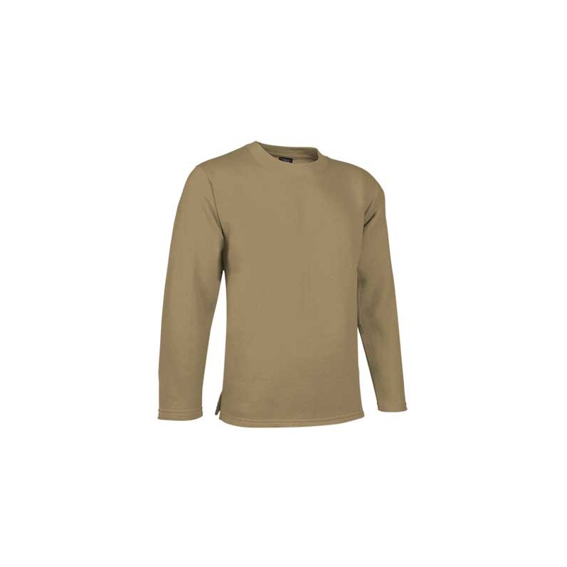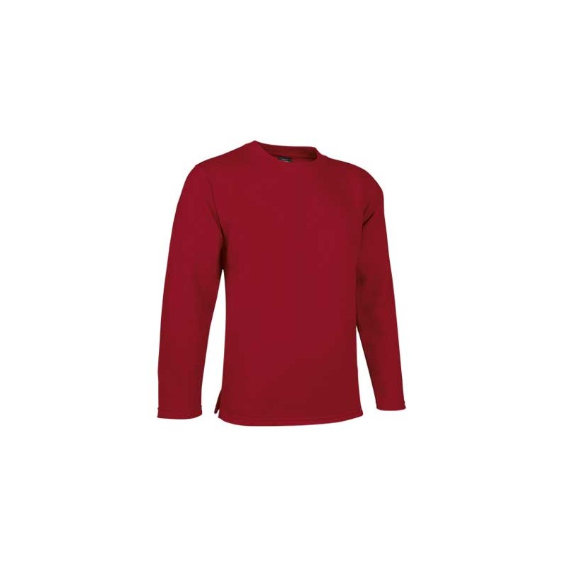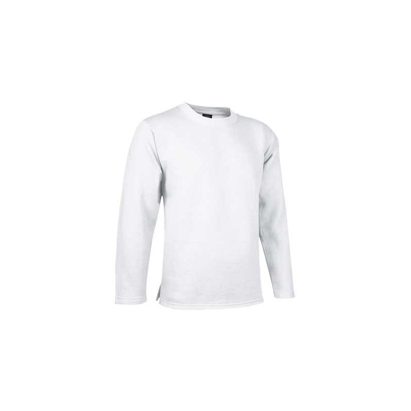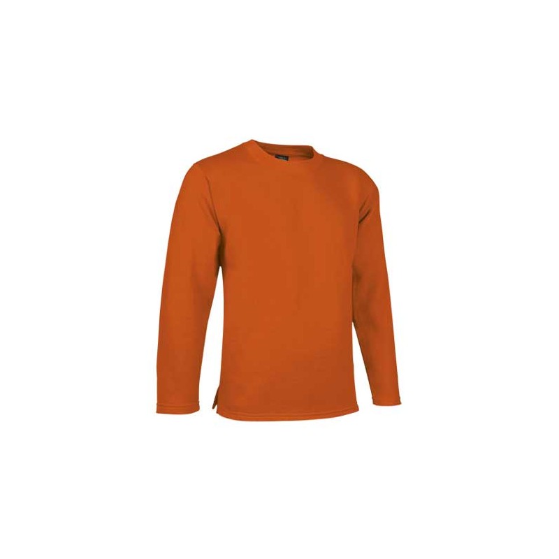 Sudadera de tacto suave y agradable confeccionada en tejido de felpa, perchado en interior, cuello redondo de canalé y doble pespunte en hombros y sisas, cintura recta con aberturas en los laterales y manga sin puño.