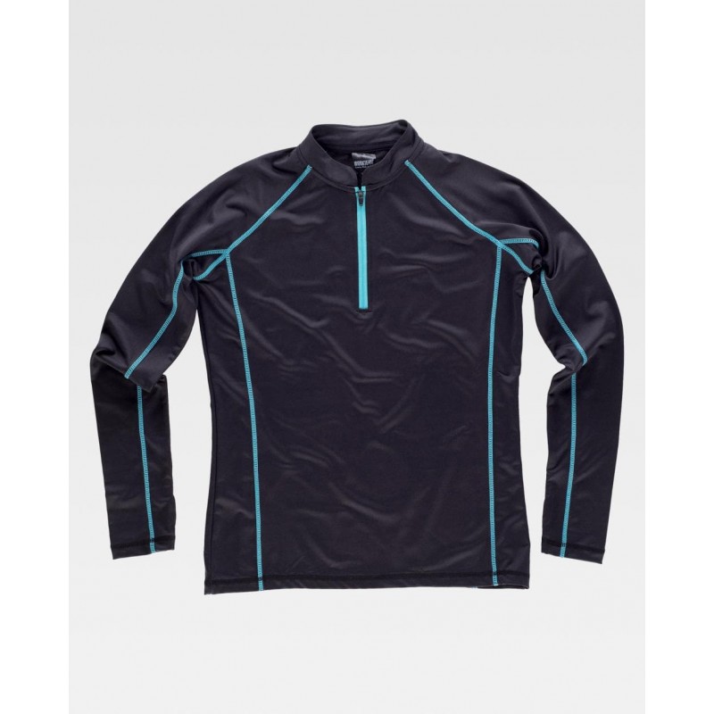 Sudadera combinada de cuello alto y cremallera de nylon de cierre invertido, cubrecosturas en el interior del cuello y solapa protectora interior vuelta en la parte superior, cubriendo la cremallera, dos bolsos interiores con cierre de cremallera y manga con puño elástico y abertura para pulgar.