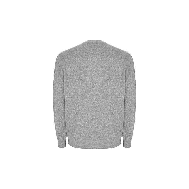 Sudadera Unisex en algodón orgánico peinado y polyester reciclado, cuello, puños y cinturilla de punto canalé 2x1, adorno de costuras remallada en hombro, sisa, cuello, puños y cintura.