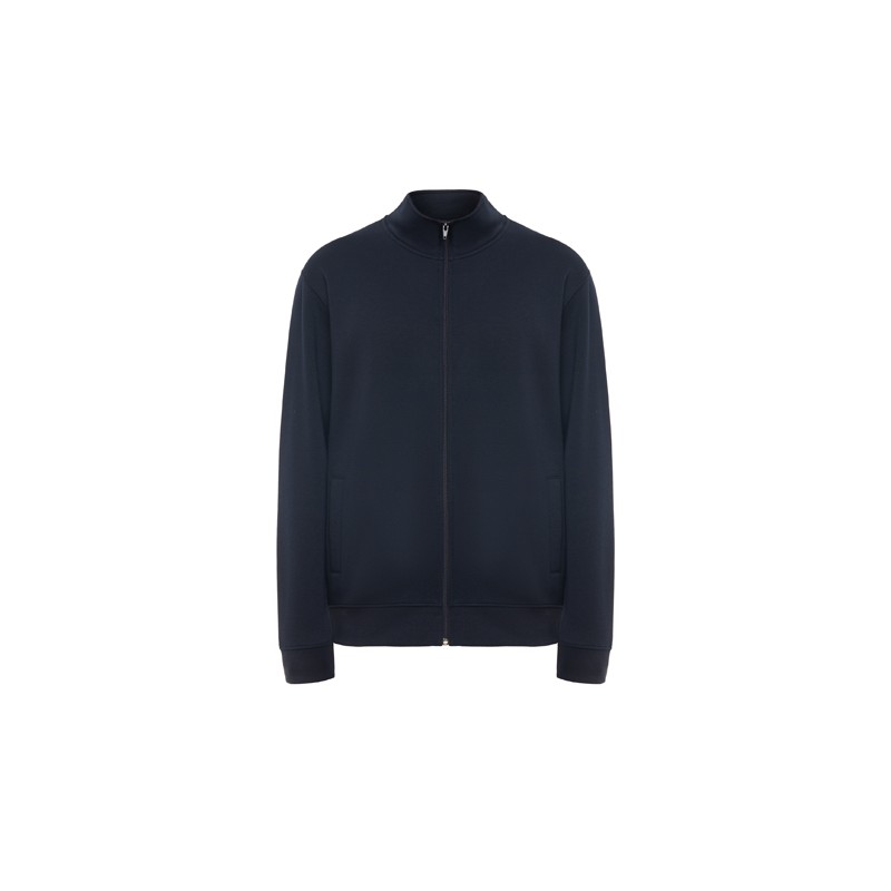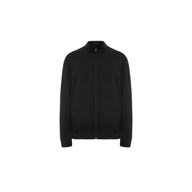 Sudadera de cuello alto con cremallera a tono, vista interior del cuello en el mismo tono, cubrecosturas reforzado en el interior del cuello y punto canalé 1x1 en puños y cintura.