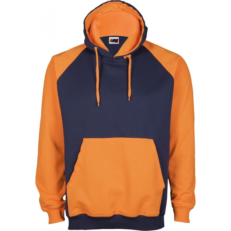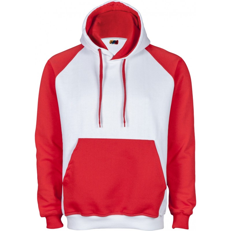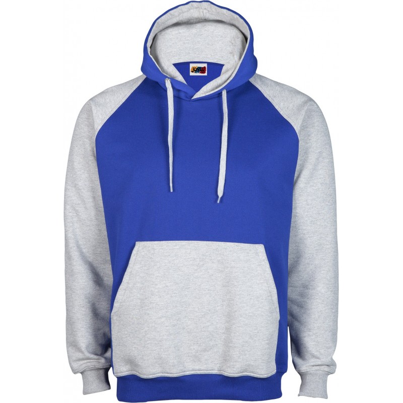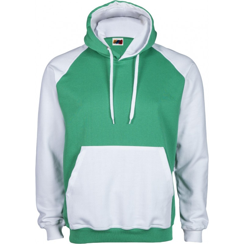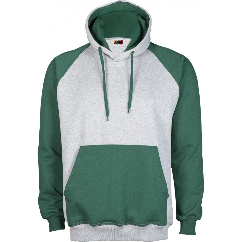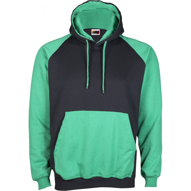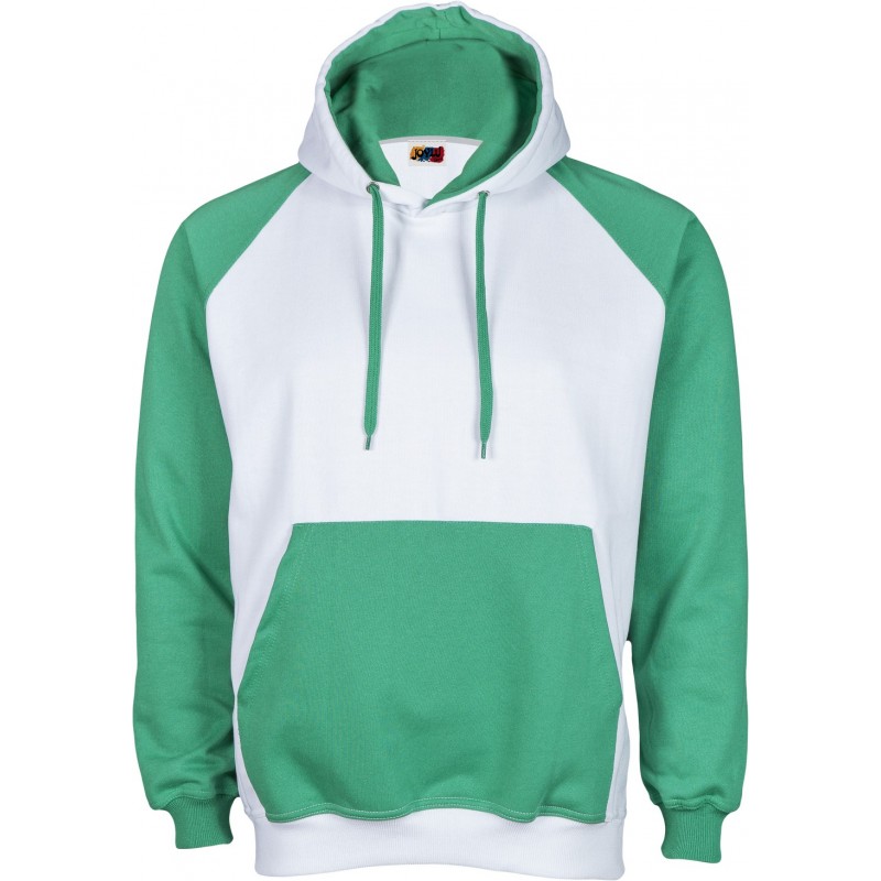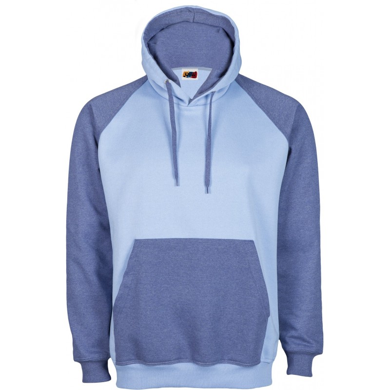 Sudadera de corte ranglan SLIM FIT con capucha doble y bolsillo canguro a contraste, costuras reforzadas en hombros y sisa, así como doble pespunte en puños y cintura.