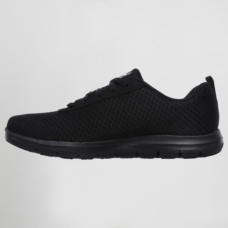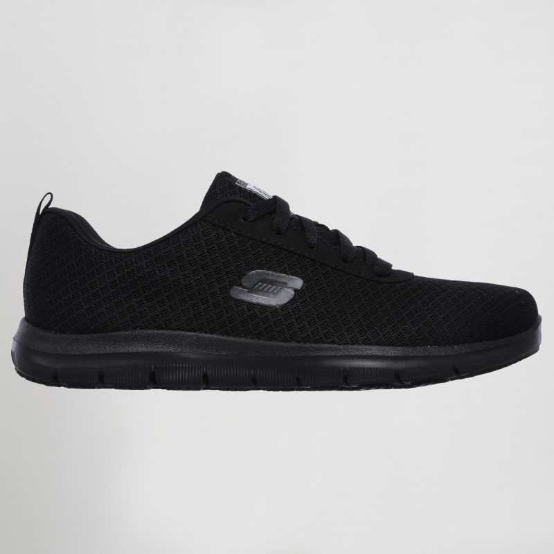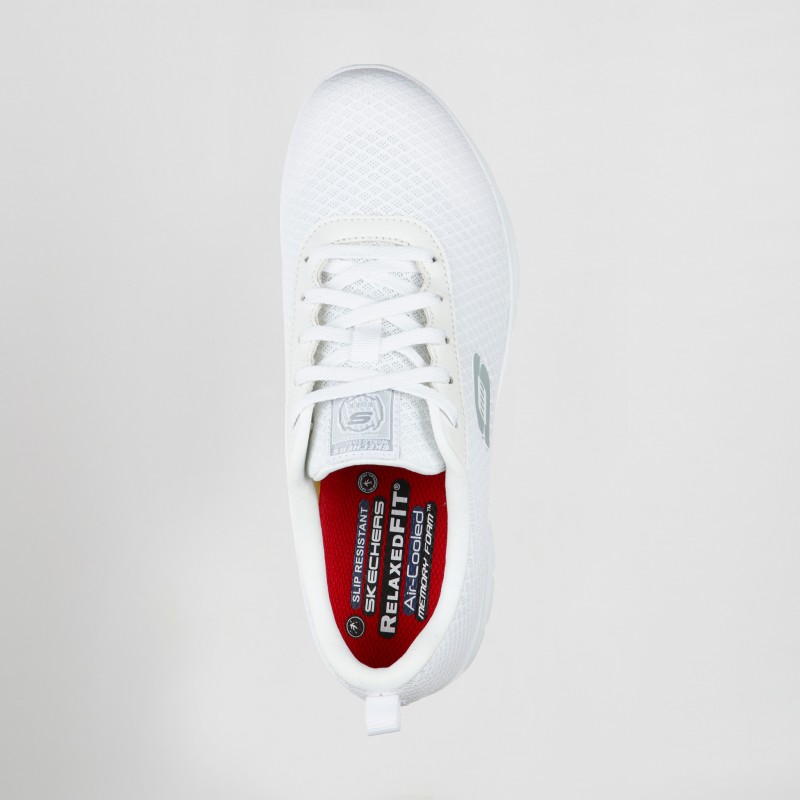 Parte superior de tejido sintético y malla en una zapatilla deportiva casual con cordones, detalles de costuras, suela antideslizante perfecta para el trabajo y plantilla SKECHERS Memory Foam.