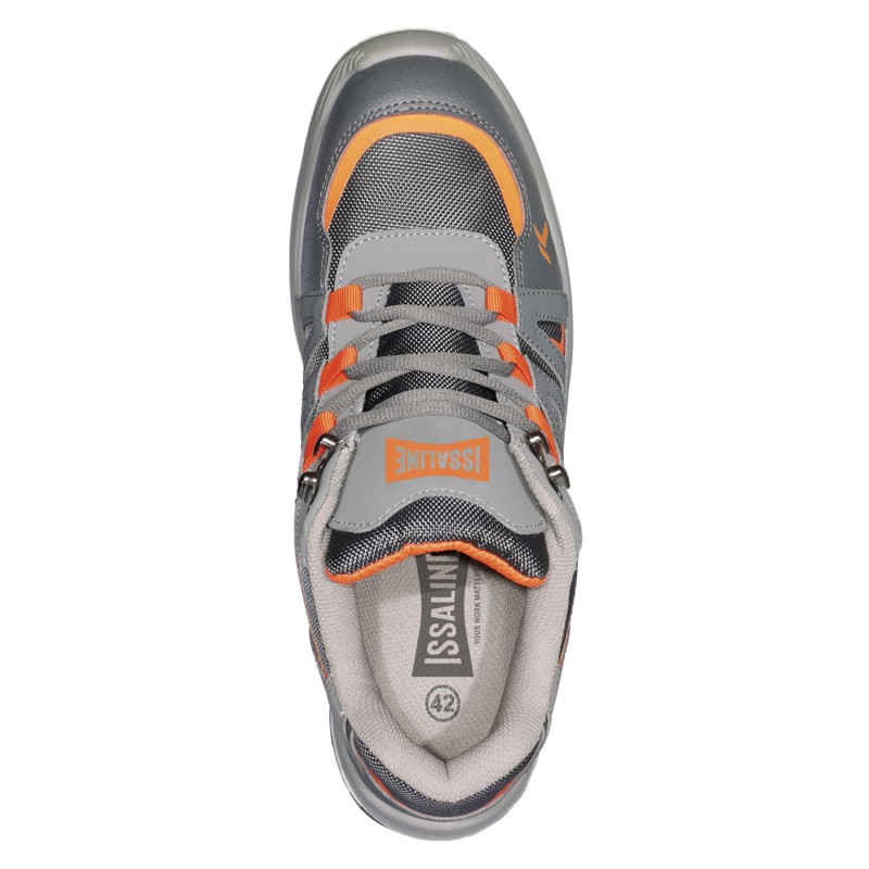 Zapato S3 tipo trekking sin metales. Parte superior en cuero en combinación con tejido símil Cordura.